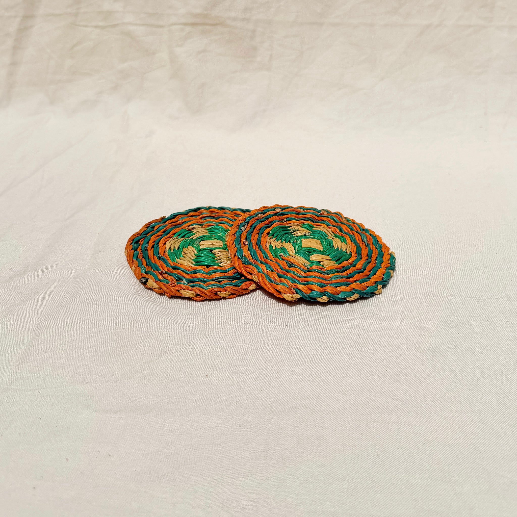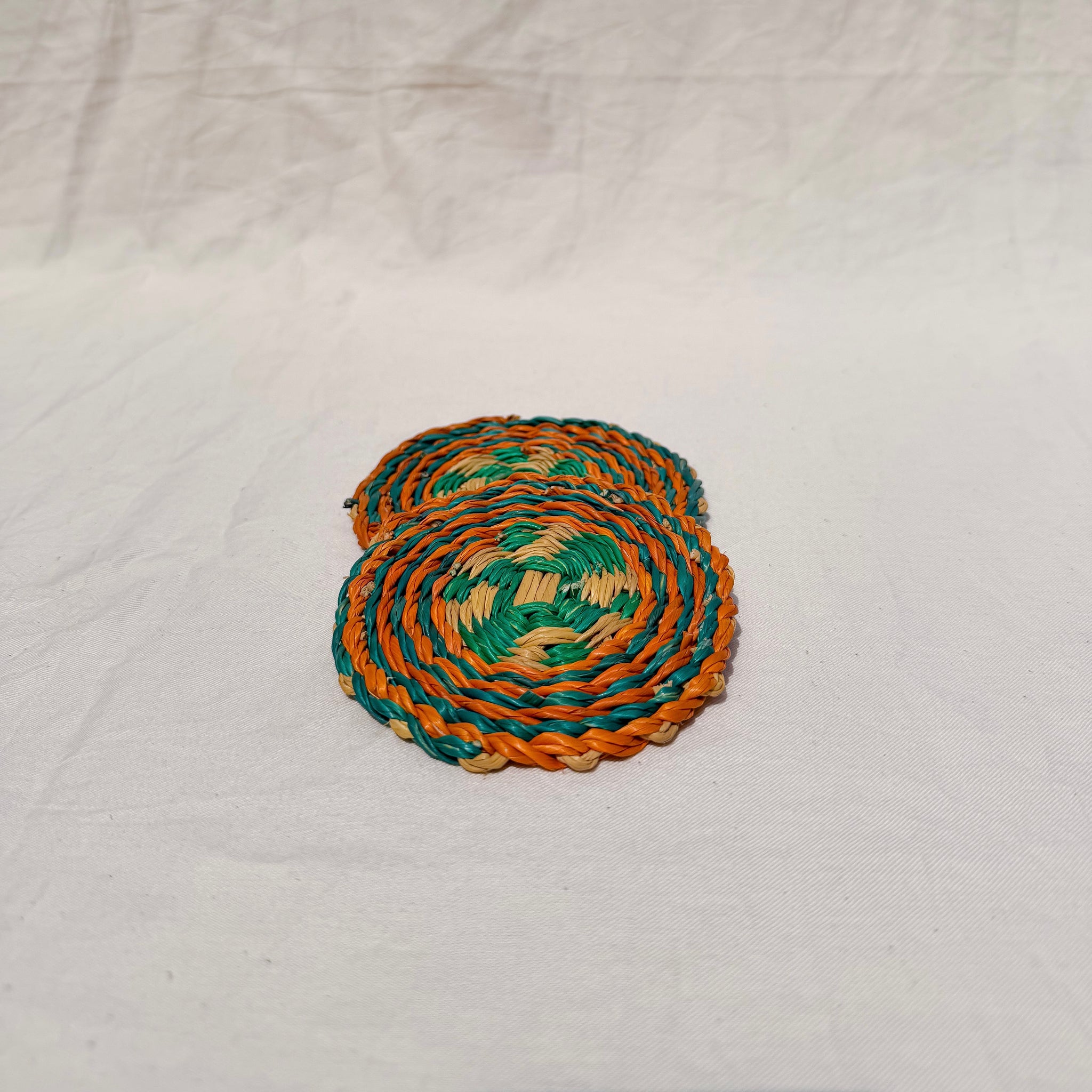 The Akula Coasters are a set of 2 handwoven from elephant grass by the Frafra People in Bolgatanga, Ghana.