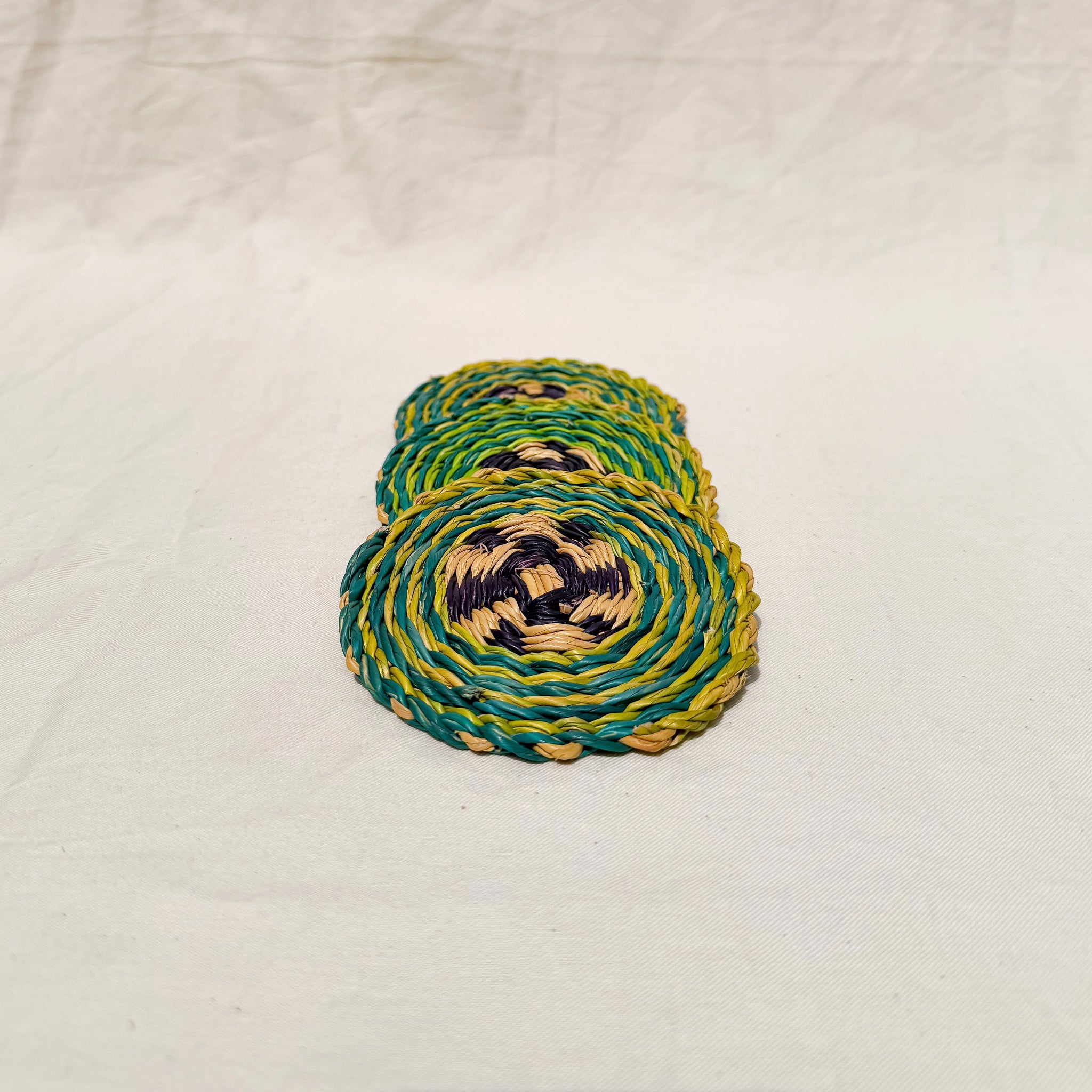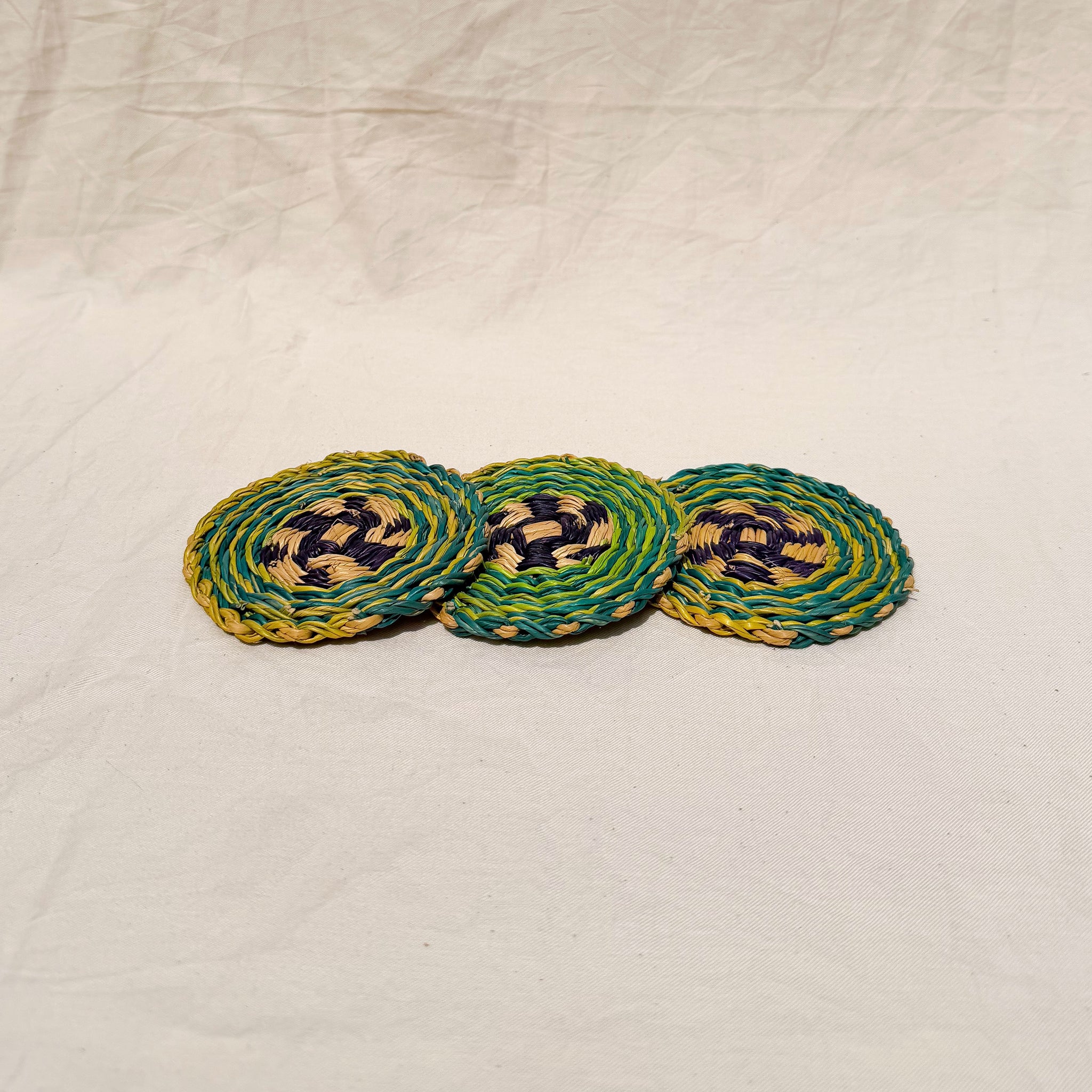 The Akula Coasters are a set of 3 handwoven from elephant grass by the Frafra People in Bolgatanga, Ghana.
