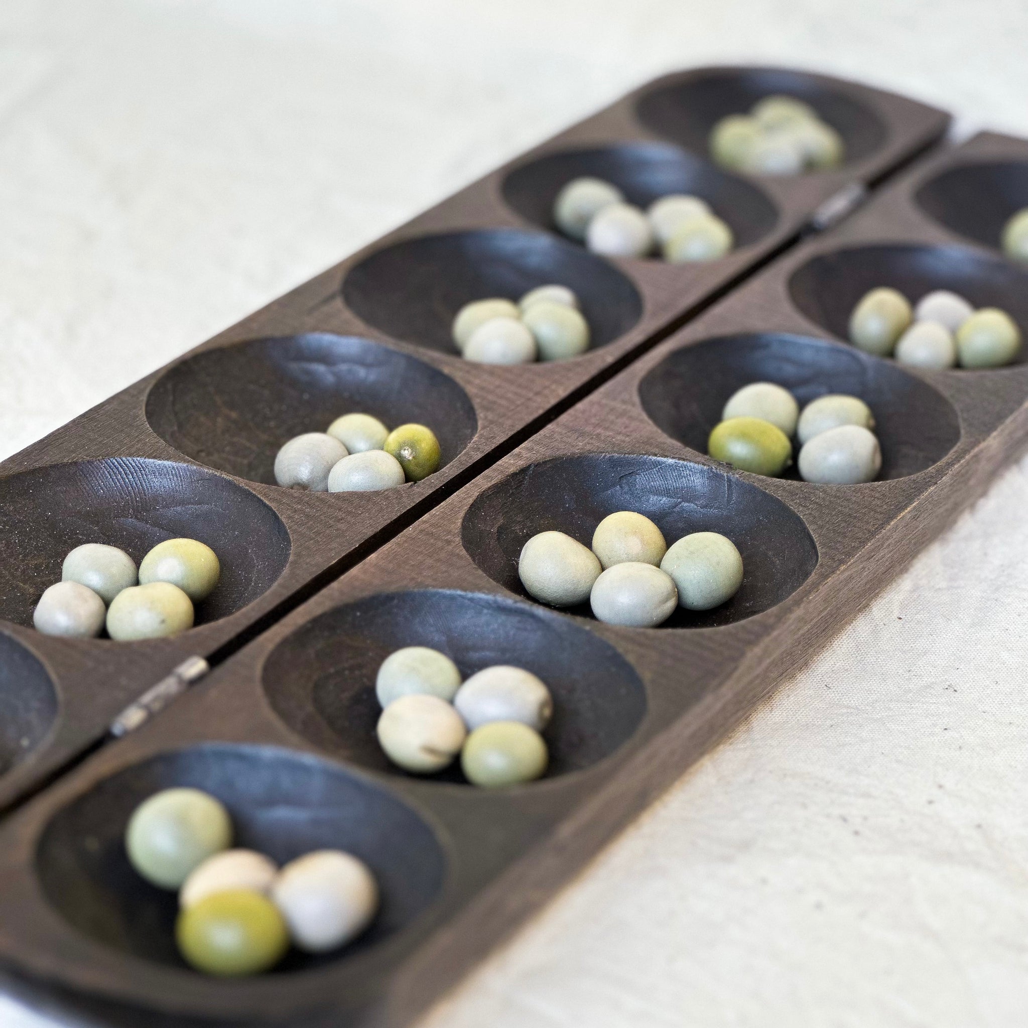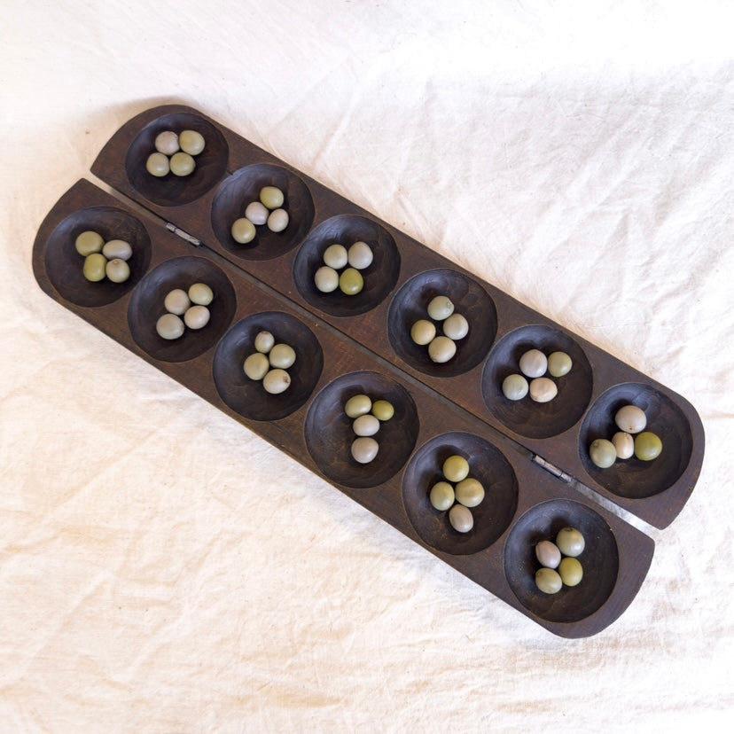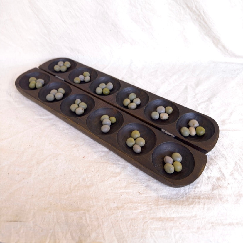This is a hand carved Ayo Board from wood by local artisans in Nigeria.